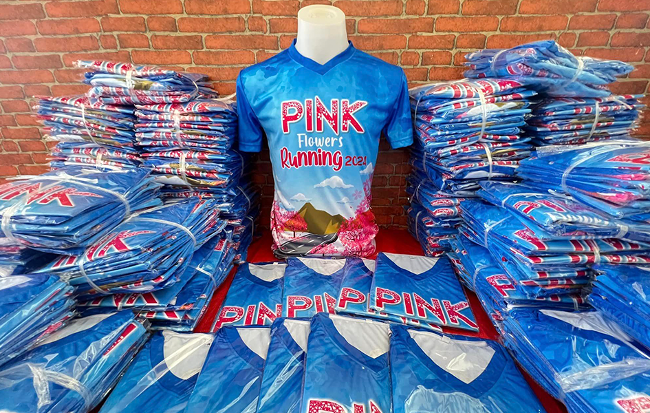 ผ้ากีฬา เนื้อหนานุ่มระเอียด ไมโคร สกรีนทั้งตัว เสื้อคอกลม